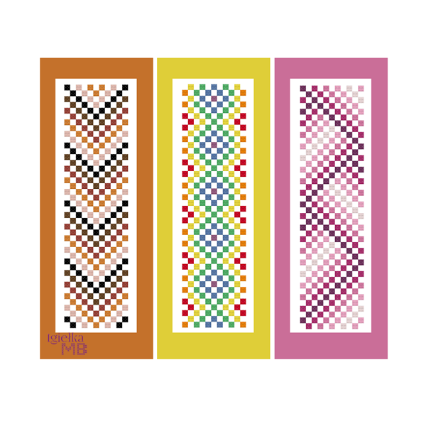* size of pattern in cross stitches and max size of one piece in pattern for greeting cards or bookmarks;