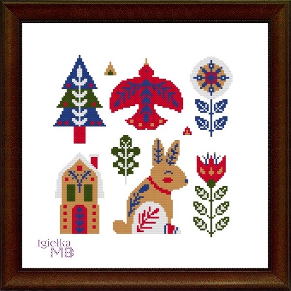 Backstich (kontury wykonywane najczęściej 1 nitką, po wykonaniu krzyżyków)