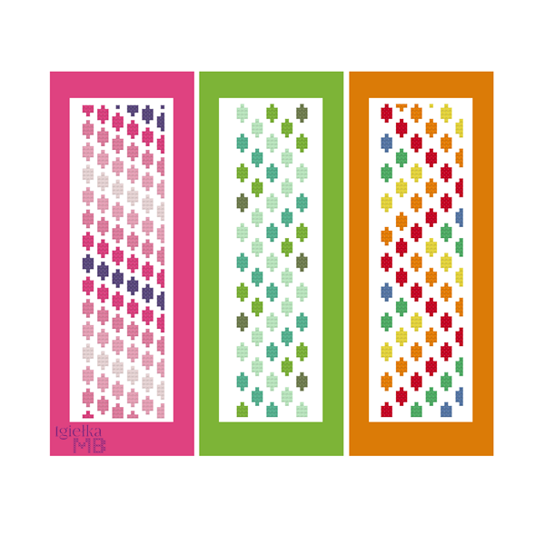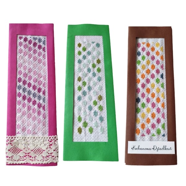 * size of pattern in cross stitches and max size of one piece in pattern for greeting cards or bookmarks;