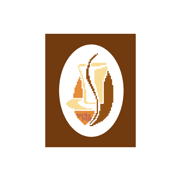 Stylish cross-stitch pattern, a cup of coffee motive with flying aroma of coffee. Kept in a warm and minimalistic style. Perfect for stitching small decorative pictures to the kitchen, dining room, or coffee corner.