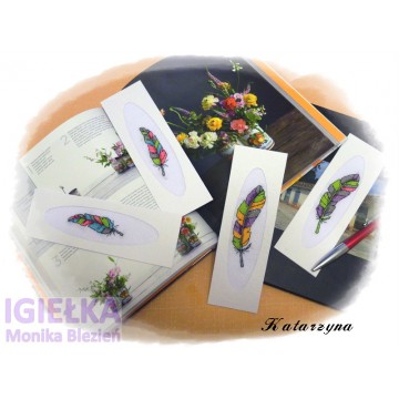 Delicate set of cross-stitch patterns featuring colorful feathers in a light, modern style. Subtle lines and soft pastel colors make these designs perfect for elegant handmade bookmarks. The patterns are simple and enjoyable to stitch, making them suitable for both beginners and experienced stitchers who appreciate minimalist, artistic cross-stitch designs.
