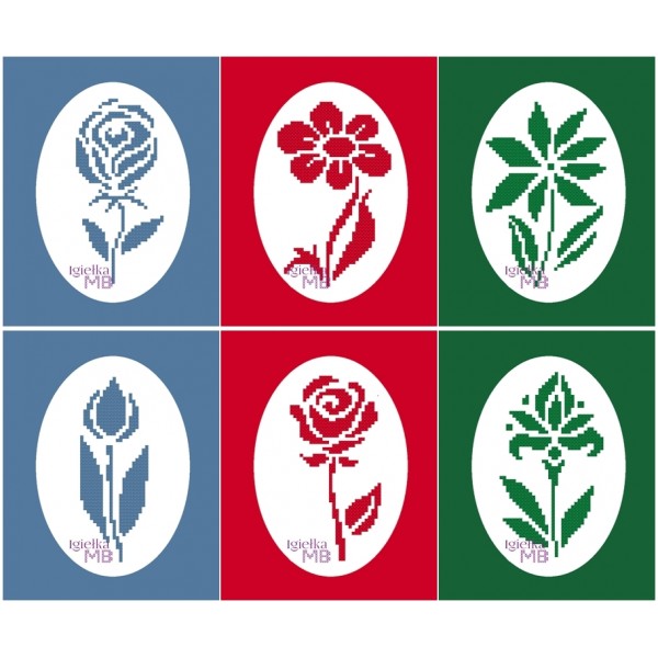 This set includes six elegant cross-stitch patterns inspired by floral motifs. Each flower is designed in a single color, giving you plenty of freedom to choose your embroidery floss — whether solid or variegated. The designs are also perfect for creatively using up leftover floss from previous projects.