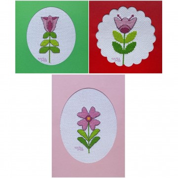Zestaw trzech wzorów do haftu krzyżykowego z delikatnymi motywami kwiatowymi, inspirowany skandynawskim klimatem i prostotą formy. Geometryczne, minimalistyczne wzory doskonale sprawdzą się jako szybkie i efektowne kartki okolicznościowe na różne okazje, np. imieniny czy urodziny.
