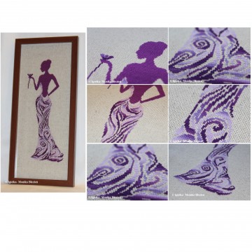 Elegancki wzór haftu krzyżykowego z kobiecą sylwetką, w którym spódnica wyszywana cieniowaną muliną tworzy wyjątkowy, dekoracyjny efekt. Subtelna forma i płynne przejścia kolorystyczne nadają projektowi lekkości i artystycznego charakteru. Idealny do wyszycia obrazu, który stanie się wyrazistą ozdobą wnętrza. Doskonały wybór dla miłośników haftu krzyżykowego poszukujących niebanalnych wzorów.