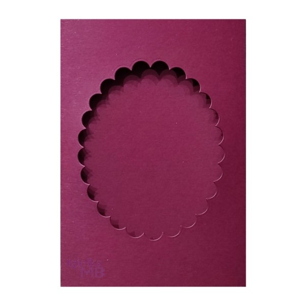 Baza do kartki okolicznościowej z okienkiem (trzyskrzydłowa*). Baza wycięta z papieru typu brystol, barwionego w masie. Faktura papieru jest lekko szorstka, dzięki czemu lepiej przyjmuje klej.