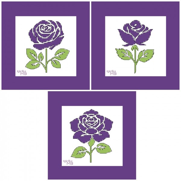 Zestaw trzech wzorów do haftu krzyżykowego przedstawiających róże. Delikatne kwiatowe kompozycje doskonale sprawdzą się jako dekoracja kartek okolicznościowych handmade – na urodziny, imieniny lub inne wyjątkowe okazje.